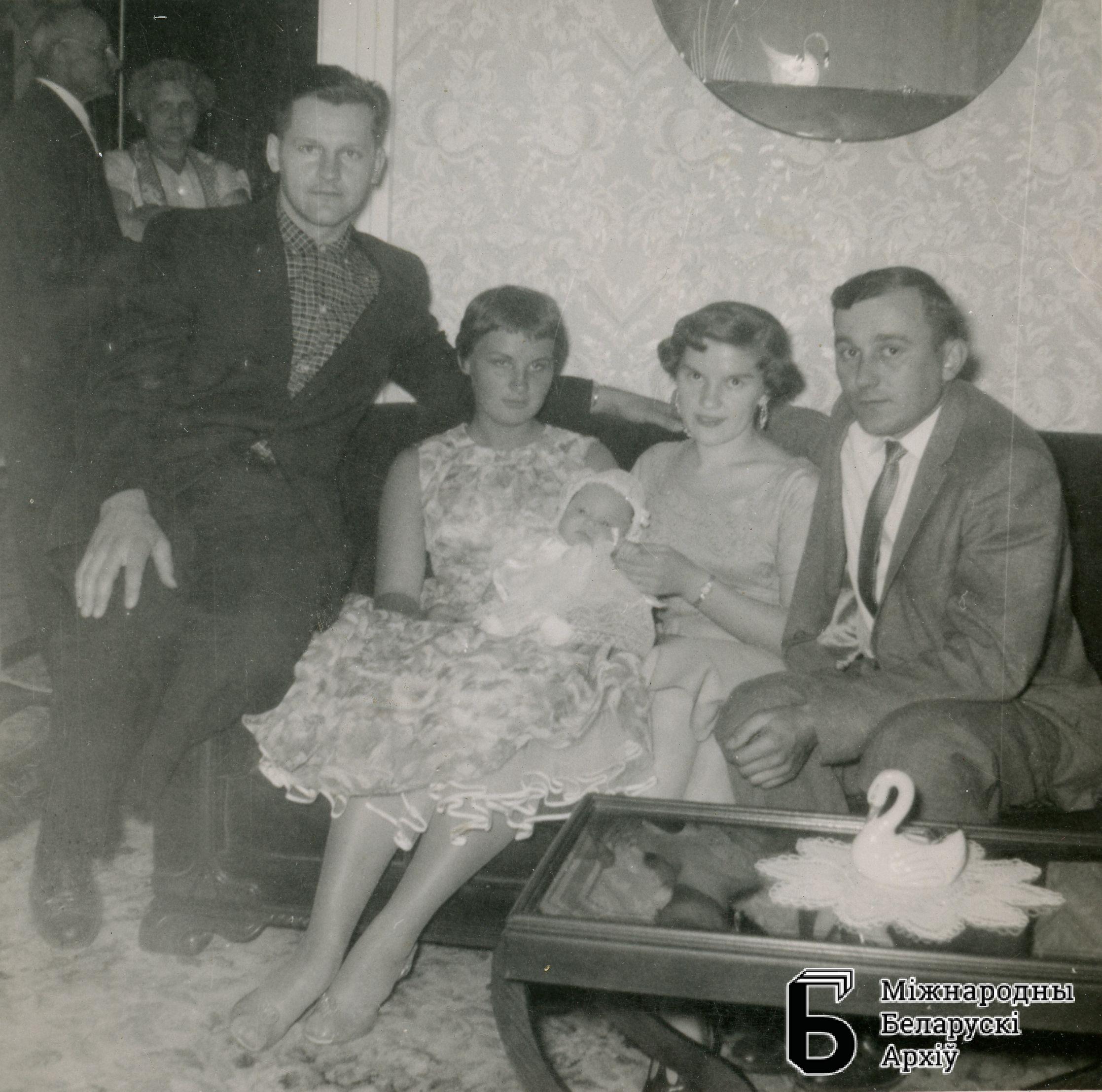 Chrzciny. Rodzice, dziecko i rodzice chrzestni. Nieznane osoby