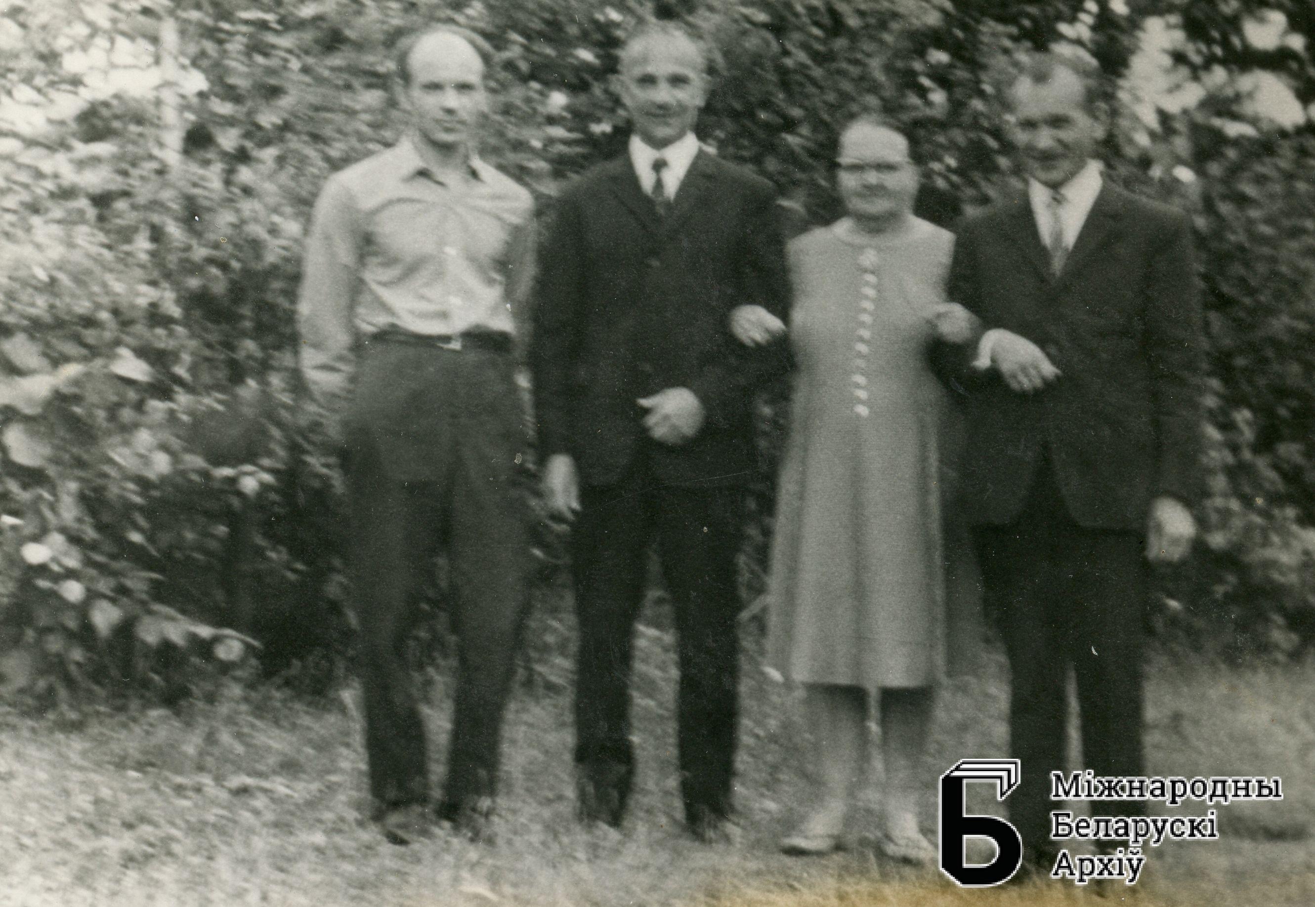 Troje mężczyzn ze starszą kobietą. Osoby nieznane