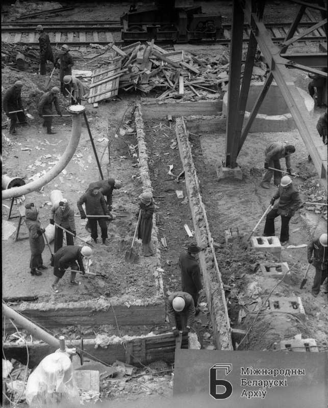 Grodno. Grupa robotników na budowy w zakładzie AZOT