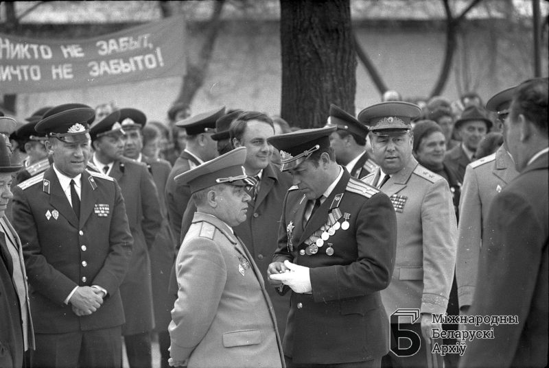 Oficerowie armii radzieckiej na otwarciu cmentarza wojskowego, ul.Belusza, Grodno