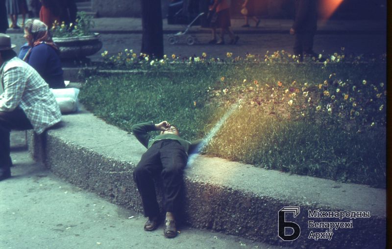 Grodno. Chłopiec odpoczywa w parku na Placu Sowieckim. Osoba nieznana
