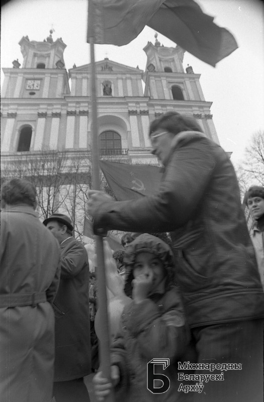 | Aniszczanka, Michaił, 1980-05-01, Mężczyzna z flaga radziecką w pochodzie pierwszomajowym w Grodnie | Feb 13, 2015 |