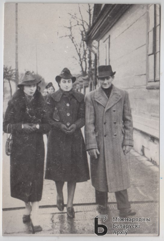 Dwie młode kobiety z mężczyzną na ulicy. Osoby nieznane