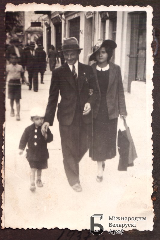 Rodzina Kwapisiewicz podczas spaceru w mieście (Brześć)
