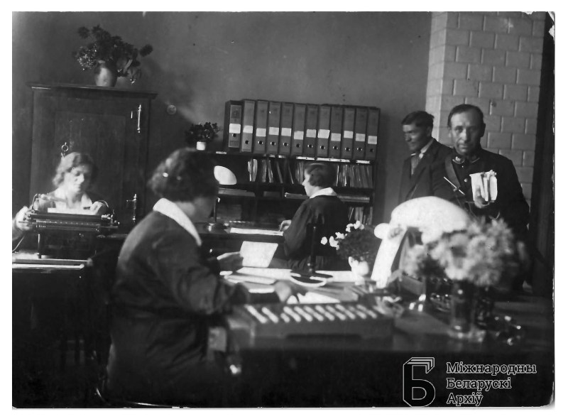 Biuro firmy "Singer" na ul. Steckiewicza 32. Na zdzięciu Wanda Ładna i inni