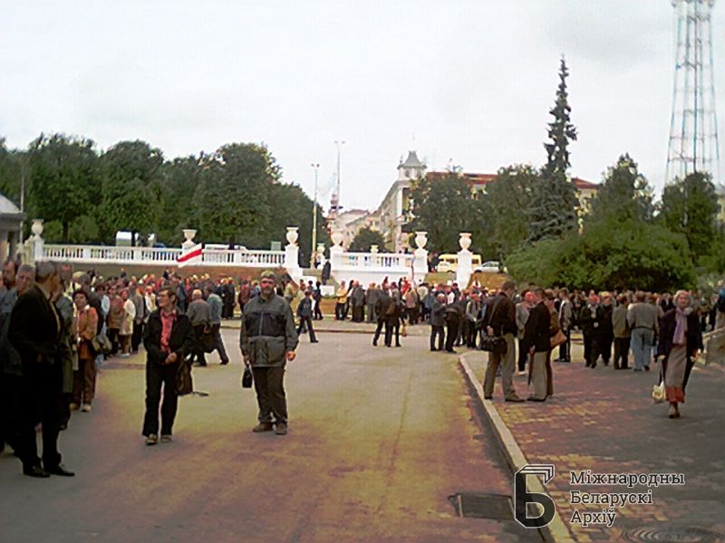 | Hilmanowicz, Uładzimir, 2003-06-25, Pogrzeb Wasila Bykawa, Mińsk 25.06.2003. Ludzie na ulicy z flagami | Apr 7, 2015 |