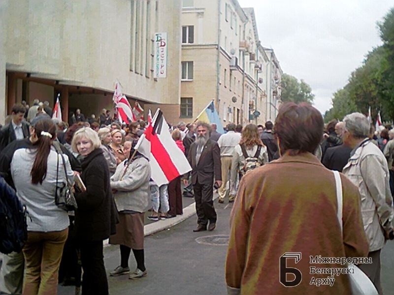 | Hilmanowicz, Uładzimir, 2003-06-25, Pogrzeb Wasila Bykawa, Mińsk 25.06.2003. Ludzie na ulicy z flagami | Apr 7, 2015 |