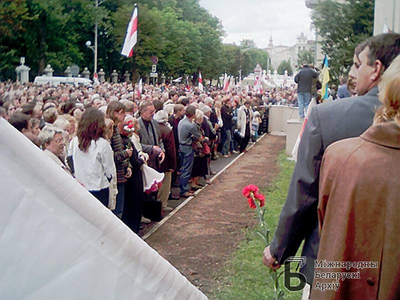 | Хільмановіч, Уладзімір, 2003-06-25, Пахаваньне ў Менску Васіля Быкава 25.06.2003. Людзі на вуліцы са сьцягамі і кветкамі | Apr 7, 2015 |