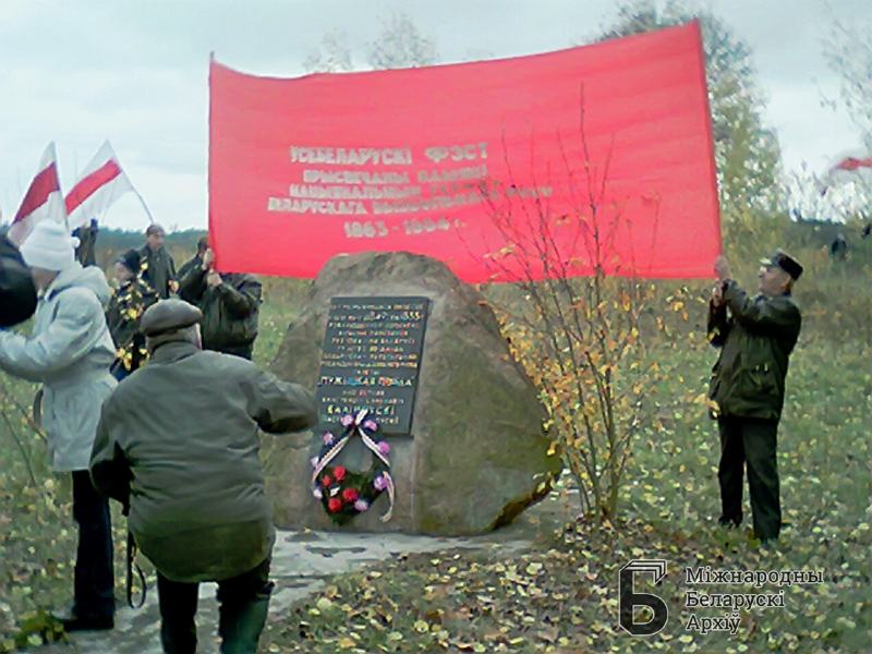 Dzień Pamięci powstańców 1863 roku, październik 2003. Jakuszowka. Flaga święta