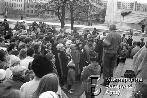 | Wybory do Rady Najwyższej ZSRR. Wiec wyborczy kandydata z BNF profesora Aleksandra Żuravlewa w pobliżu fabryki zegarków | Dec 17, 2015 |