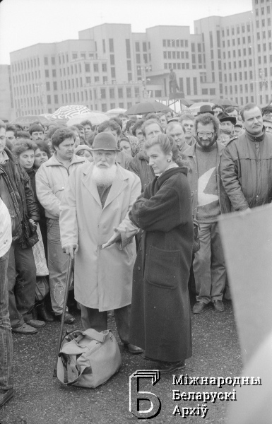Мітынг бастуючых рабочых на плошчы Леніна (цяпер Незалежнасці), арганізаваны незалежнымі прафсаюзамі