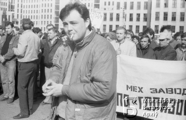 Мітынг бастуючых рабочых на плошчы Леніна (цяпер Незалежнасці), арганізаваны незалежнымі прафсаюзам