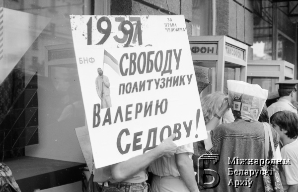 Пікет супраць арышту рабочага лідэра Валера Сядова на праспекце Незалежнасці