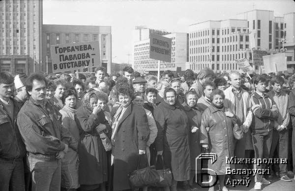 | Wiec robotników strajkujących zakładów mińskich na placu Lenina (Niepodległości). W środku liderka robotników Maria Alijeva | Dec 30, 2015 |