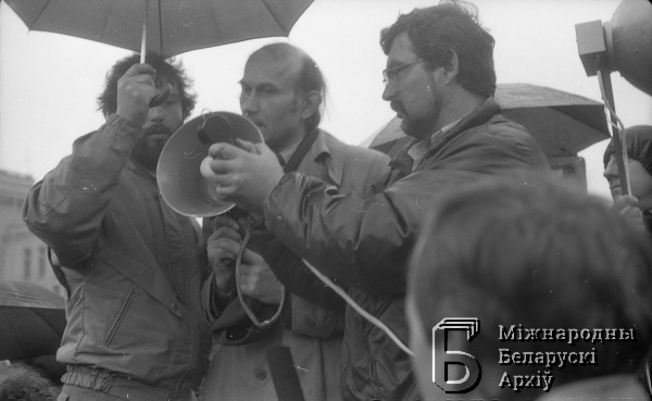 | Wiec robotników strajkujących zakładów mińskich na placu Lenina (Niepodległości). Zianon Pazniak, Henadź Bykau | Dec 30, 2015 |
