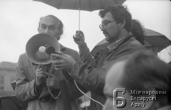 | Wiec robotników strajkujących zakładów mińskich na placu Lenina (Niepodległości). Zianon Pazniak, Henadź Bykau | Dec 30, 2015 |