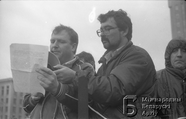 Wiec robotników strajkujących zakładów mińskich na placu Lenina (Niepodległości)