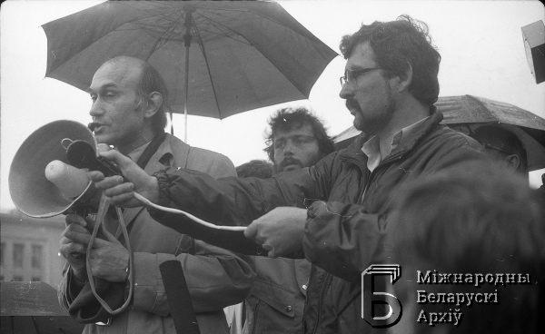 | Wiec robotników strajkujących zakładów mińskich na placu Lenina (Niepodległości). Zianon Pazniak, Henadź Bykau | Dec 30, 2015 |