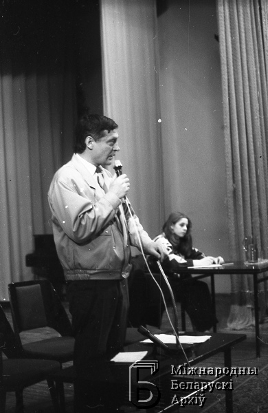 | Konferencja komitetów strajkowych w Domu Literatów podczas strajku generalnego. Lider robotników Heorhi Muchin | Dec 30, 2015 |