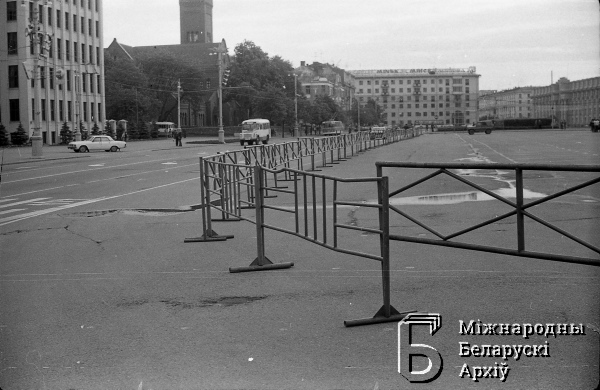 Wiec robotników strajkujących zakładów mińskich na placu Lenina (Niepodległości)