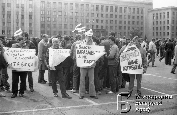 | Wiec robotników strajkujących zakładów mińskich na placu Lenina (Niepodległości). Z transparentami pracownicy z Witebska | Jan 4, 2016 |