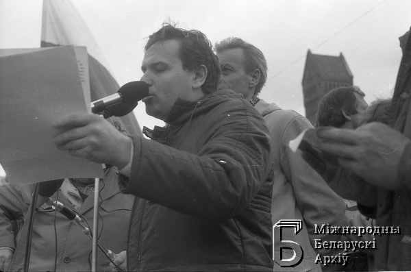 | Wiec robotników strajkujących zakładów mińskich na placu Lenina (Niepodległości). Lider robotników Siarhej Antonczyk | Jan 4, 2016 |