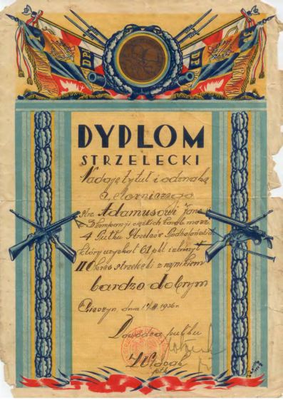 Dyplom strzelecki nadający tytuł i odznakę celowniczego Pułku Strzelców Podhalańskich 1936r.