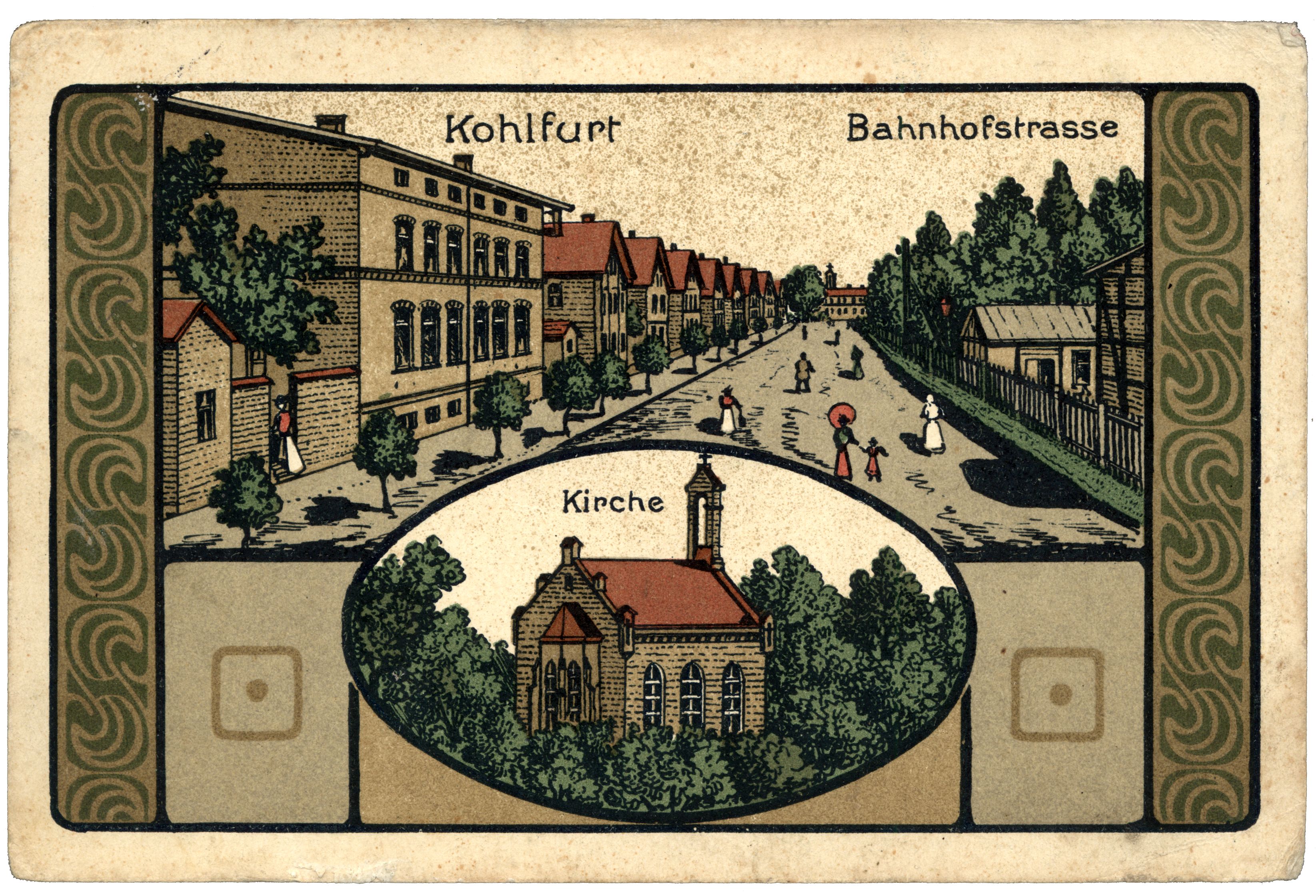 Kohlfurt - Bahnhofstrasse 1913 litografia