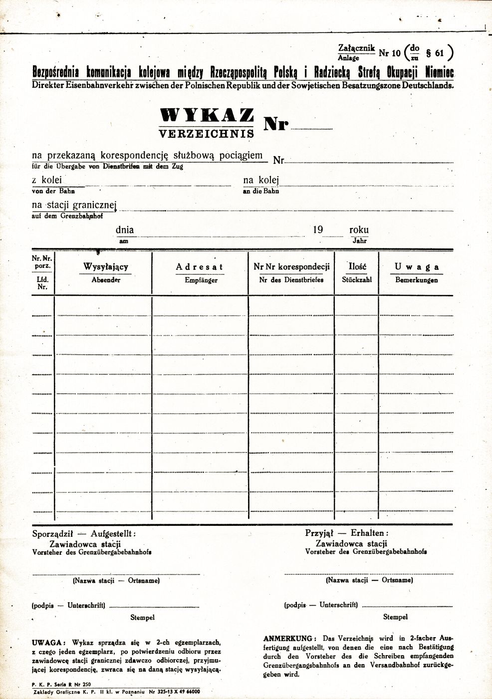 20w. ; kolej ; druk ; strefa okupacyjna ; wykaz ; radziecka strefa okupacyjna w Niemczech ; NRD