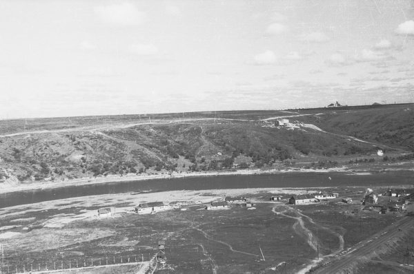 Związek Radziecki ; Polacy w ZSRR ; lata 50-te ; łagry ; rzeka ; baraki ; panorama ; krajobraz ; kopalnia
