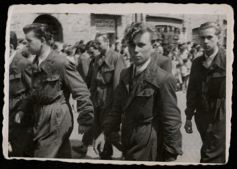 Longin Kobeszko podczas pochodu z okazji Święta 1. Maja, ul. Lipowa, Białystok, 1957 r.