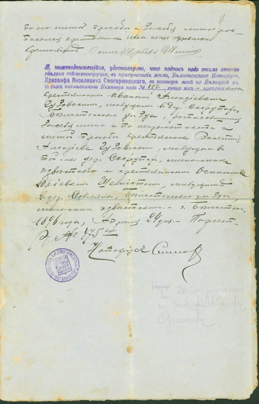 Akt notarialny kupna-sprzedaży, 1896 r.
