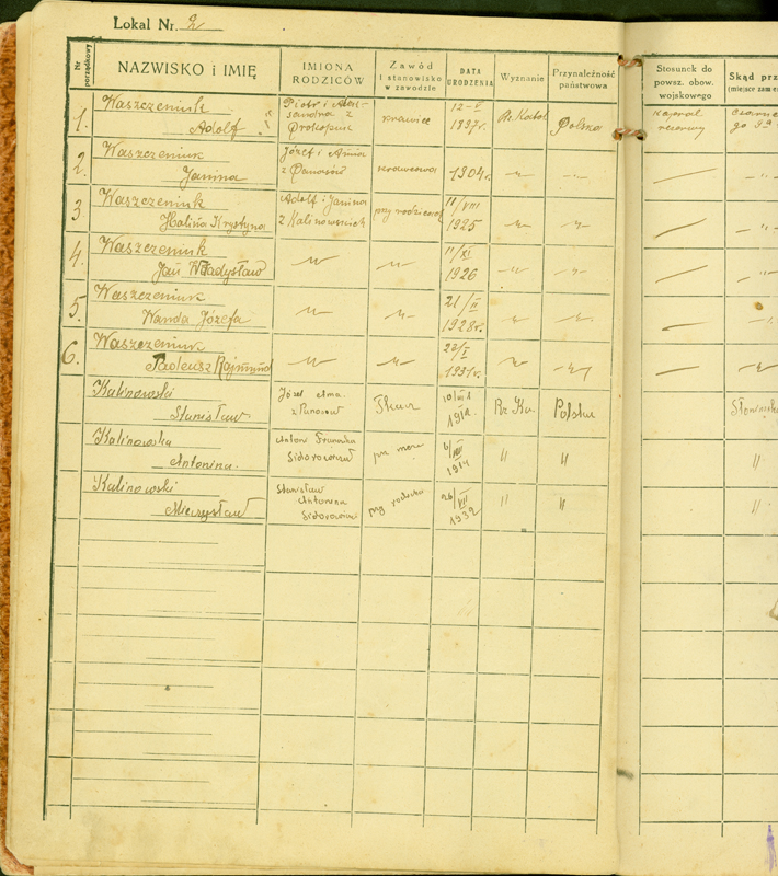 Domowa księga meldunkowa prowadzona dla domu przy ul. Sinej 4, Białystok, 4 marca 1931 r.