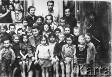 Title: Średnia Szkoła dla Dzieci Polskich im. Adama Mickiewicza. Wśród dzieci - Regina Maksymowicz (z domu Hawryłkiewicz), która pracowała w tejże szkole od 25.08.1944 do 20.04.1945.